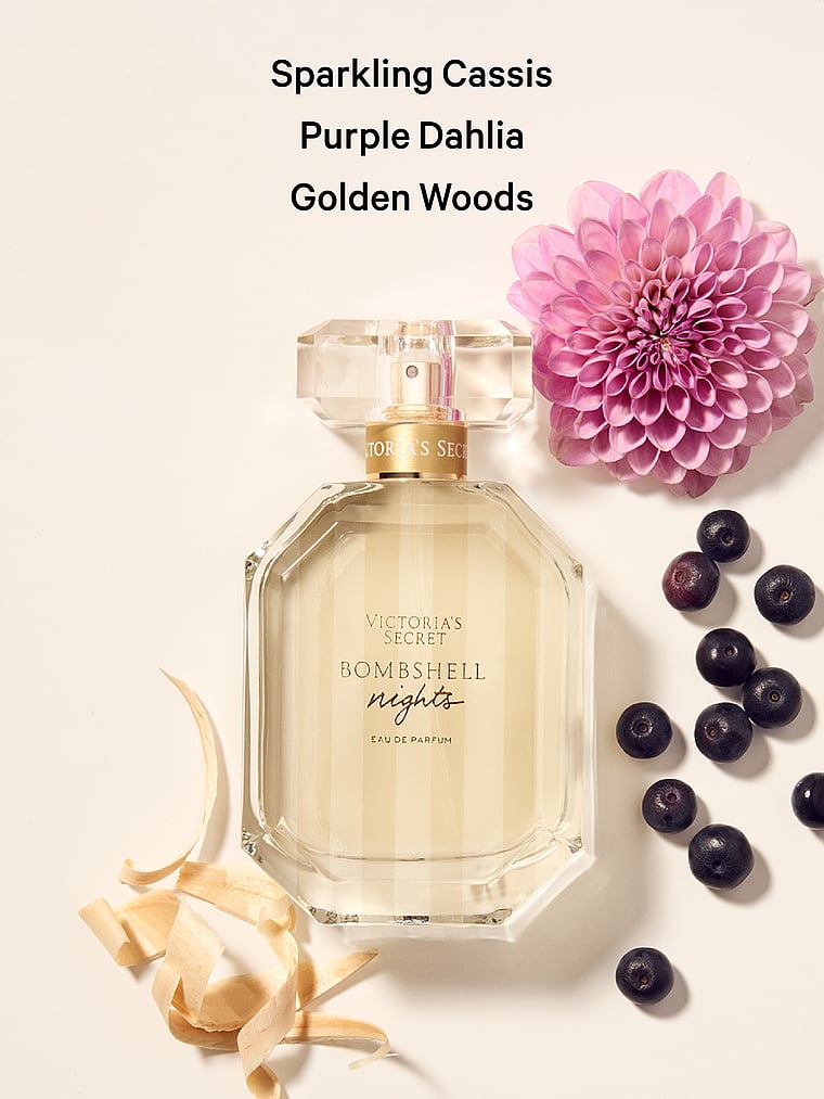 Back for a limited time only: Bombshell Nights. Luscious and berry-like, sparkling cassis gives the fragrance a flirty start. The floral heart of purple dahlia blooms with sensuality. The base of the fragrance is wrapped in the opulent warmth of soft vanilla musks and rich golden woods. Pop the Champagne, you��re invited.